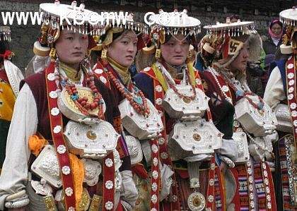 མི་ཉག་གི་ཁྱད་ཆོས་འབུར་དུ་ཐོན་པའི་བུད་མེད་ཀྱི་རྒྱན་གོས་ལ་མི་ཉག་རང་གི་སྐད་དུ་འབག་རྒོ་ཞེས་ཟེར་ལ།སྟོད་འགག་དང་སྨད་ཤམ་གྱི་རྣམ་པ་ཟུང་འབྲེལ་གྱིས་བཟོ་དྲུབ་བྱས་པ་ཞིག་ཡིན་ལ། དེའི་རྒྱུ་གཙོ་བོ་ཕྲུག་དང་སྣུམ་བུ། ལུག་བལ་བཅས་ཀྱིས་གྲུབ་ཅིང་།ཕྲུག་དང་སྣུམ་བུ་ལ་ཁ་དོག་དཀར་སེར་དམར་ལྗང་སོགས་ཁ་དོག་སྣ་ལྔའི་ཚོན་གྱིས་སྡེབ་སྦྱོར་བྱས་ཏེ་འཐག་བཟོ་བྱས་པ་ཞིག་ཡིན་པས།མི་ཉག་བུད་མེད་ཀྱི་རྒྱན་གོས་ལའང་ཁ་དོག་དཀར་སེར་དམར་ལྗང་གི་ཚོན་བསྡེབས་ཏེ་བཟོ་དྲུབ་བྱེད་དགོས་པ་ཞིག་ཡིན་པས་ཁ་དོག་དེ་དག་གིས་གནམ་སྔོན་པོ་དང་སྤྲིན་དཀར་པོ། ས་སེར་པོ་སོགས་དང་འབྲེལ་བ་ཡོད་པ་མཚོན་གྱི་ཡོད་པ་རེད།བཟོ་དྲུབ་བྱེད་སྟངས་རྒྱན་གོས་གཞན་པ་བཟོ་དྲུབ་བྱེད་ལུགས་དང་གཏན་ནས་མི་འདྲ་ལ་དཀར་སེར་དམར་ལྗང་སོགས་ཁ་དོག་མང་པོ་བསྡེབས་ཏེ་ཁོག་སྨད་ཀྱི་གོས་ཧྲིལ་པོ་ཆག་པ་བྱས་ཏེ་དྲུབ་བཟོ་བྱེད་དགོས་པ་ཞིག་ཡིན་ལ།ཆག་པ་ལའང་ཆག་པ་དྲུག་ཅུ་ཅན་དང་ཆག་པ་བརྒྱད་ཅུ་ཅན། ཆག་པ་བརྒྱ་དང་བརྒྱད་ཅན་སོགས་སོ་སོར་བརྒལ་ཏེ་དེའི་ནང་གི་གོས་ཀྱི་རིན་ཐང་ལ་དབྱེ་བ་འབྱེད་རྒྱུ་ཡོད་པ་རེད།ཁོག་སྟོད་ལའང་རྒྱུ་ཆ་དེ་དག་གིས་གྲུབ་པའི་སྟོད་ཐུང་ཞིག་གྱོན་རྒྱུ་ཡོད་ལ་དེའི་ནང་ལ་ནང་འཇམ་དང་སྟོད་འགག སྨད་ཀྱི་པང་ཁེབས་སོགས་བོད་ཁུལ་གྱི་ས་གཞན་ལ་མེད་པའི་ཁྱད་ཆོས་འབུར་ཐོན་གྱི་རྒྱན་གོས་ཤིག་ཡིན། རྒྱན་གོས་འདི་ནི་གཙོ་བོ་གཉེན་སྟོན་དང་དུས་ཆེན། དུས་སྟོན་གྱི་སྐབས་སུ་གྱོན་རྒྱུའི་རིགས་ཤིག་ཡིན། མཚོ་སྔོན་པོ་དྲ་བ་ནས།།